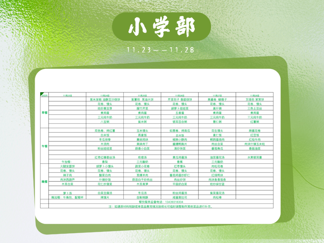 2025-2026学年第一学期第十三周食谱(11.23--11.28)