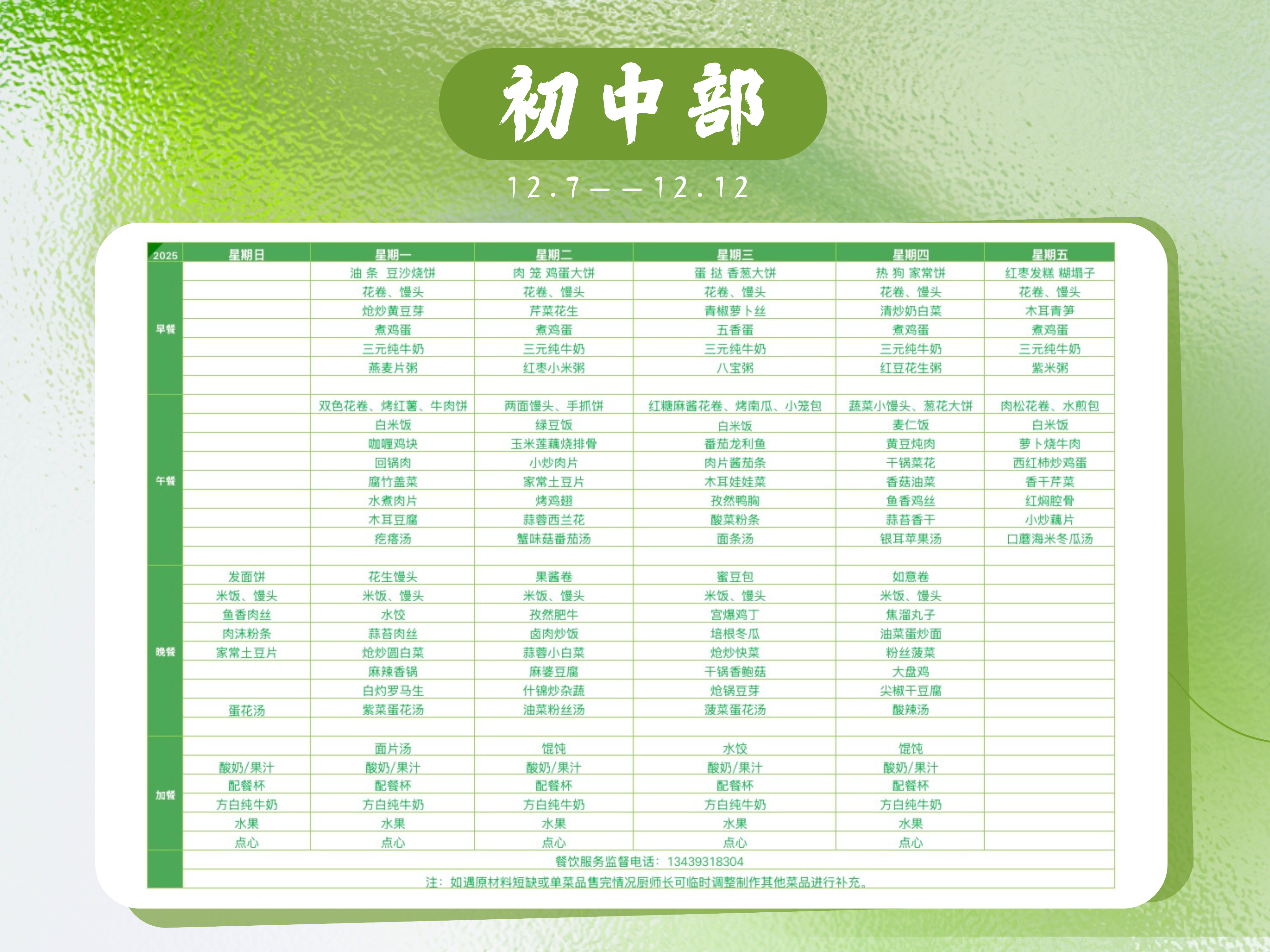 2025-2026学年第一学期第十五周食谱(12.7--12.12)
