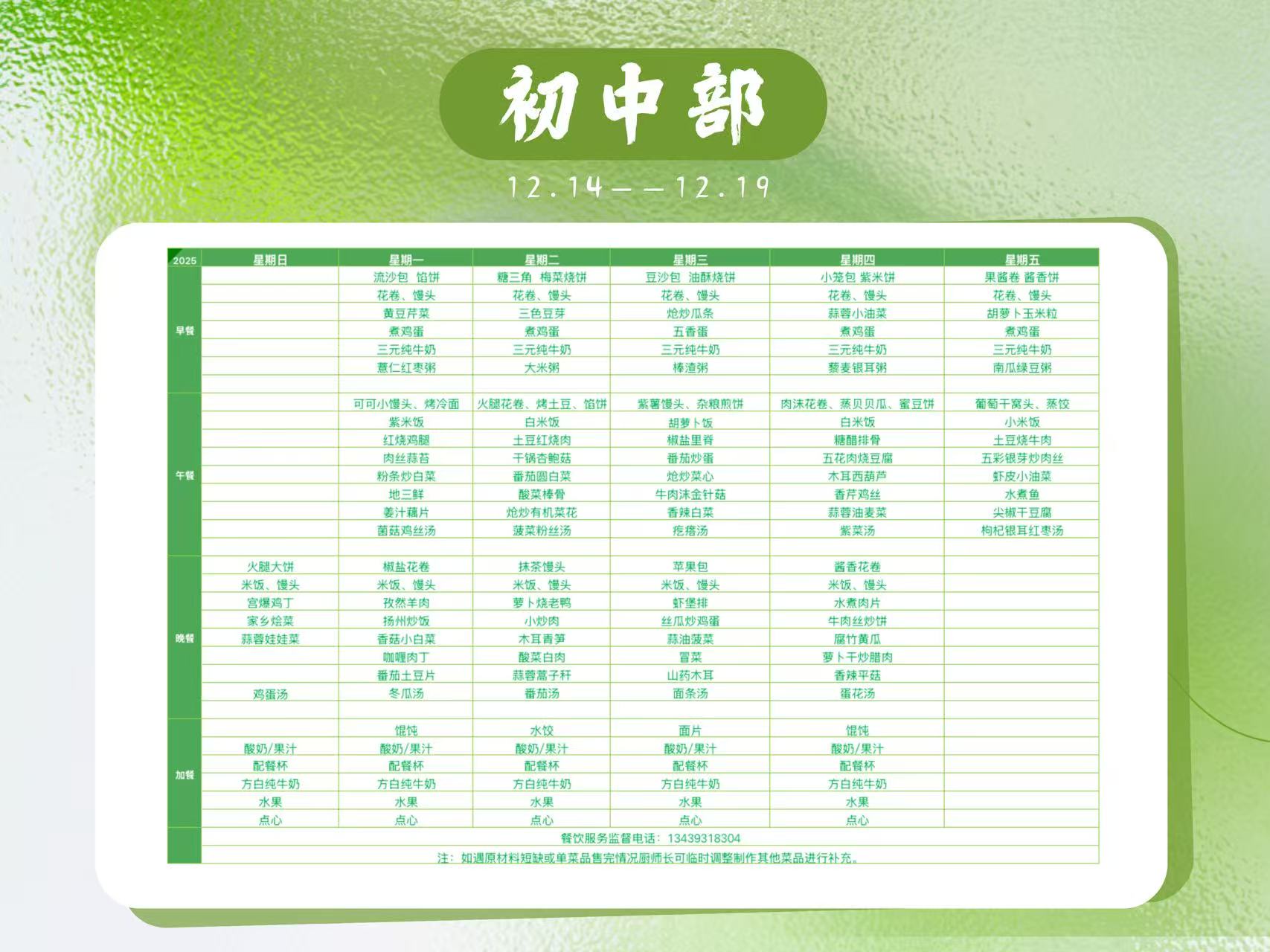 2025-2026学年第一学期第十五周食谱