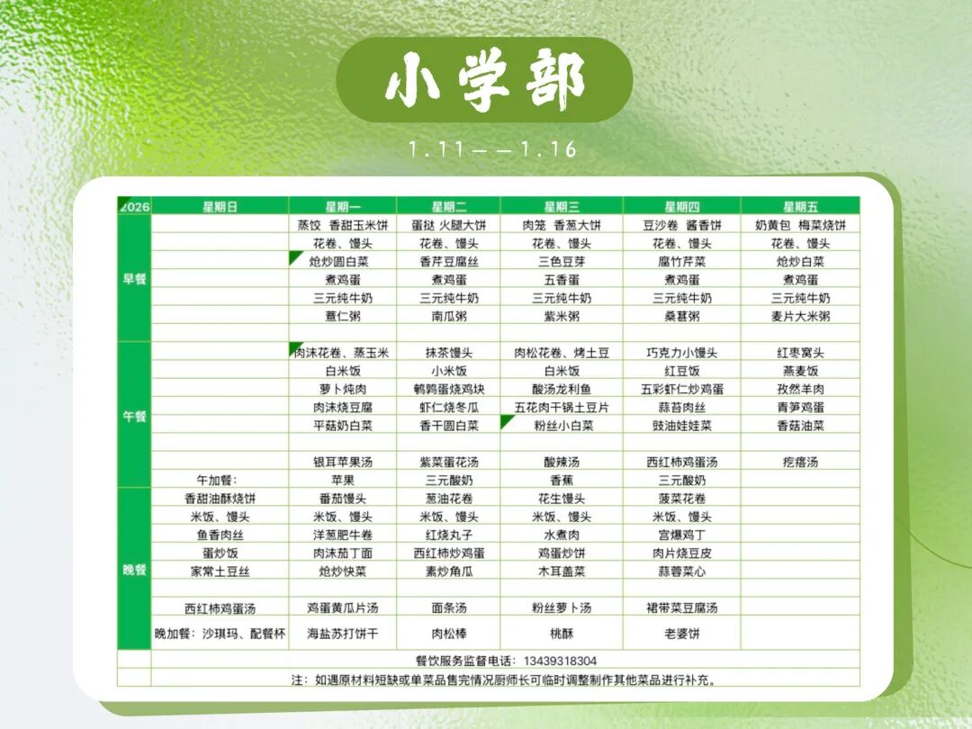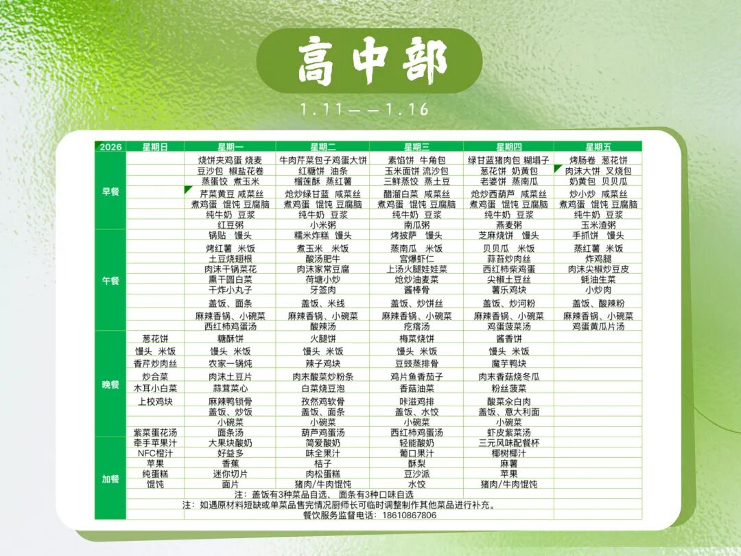 2025-2026学年第一学期第二十周食谱(1.11——1.16)