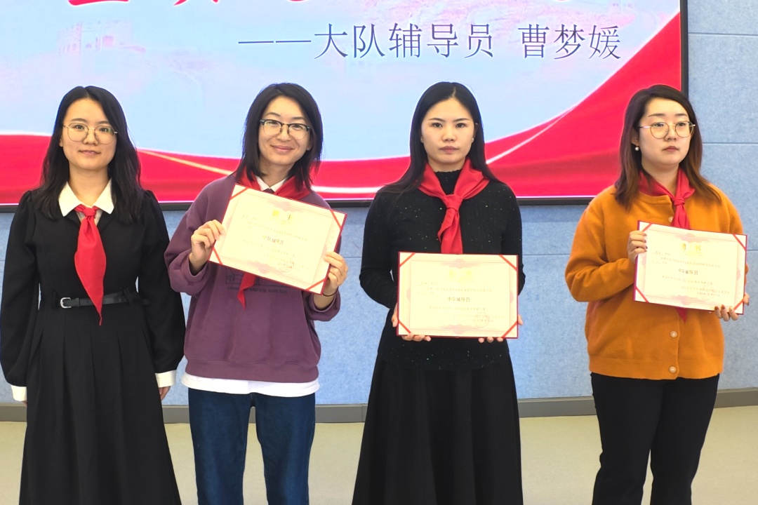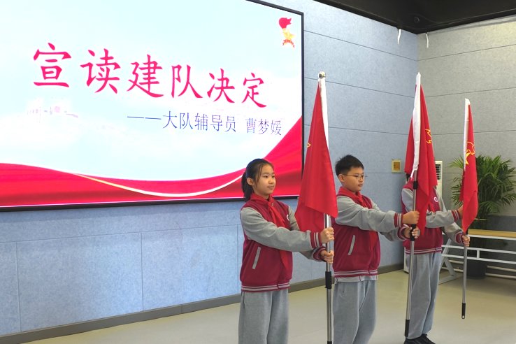 大队辅导员曹梦媛老师宣读初一年级新建中队及辅导员名单,依次向各中队授旗并为辅导员颁发聘书。队旗承载着中队的荣誉与责任,聘书则寄托着学校对辅导员引领队员成长、传承红色基因的深切期望。