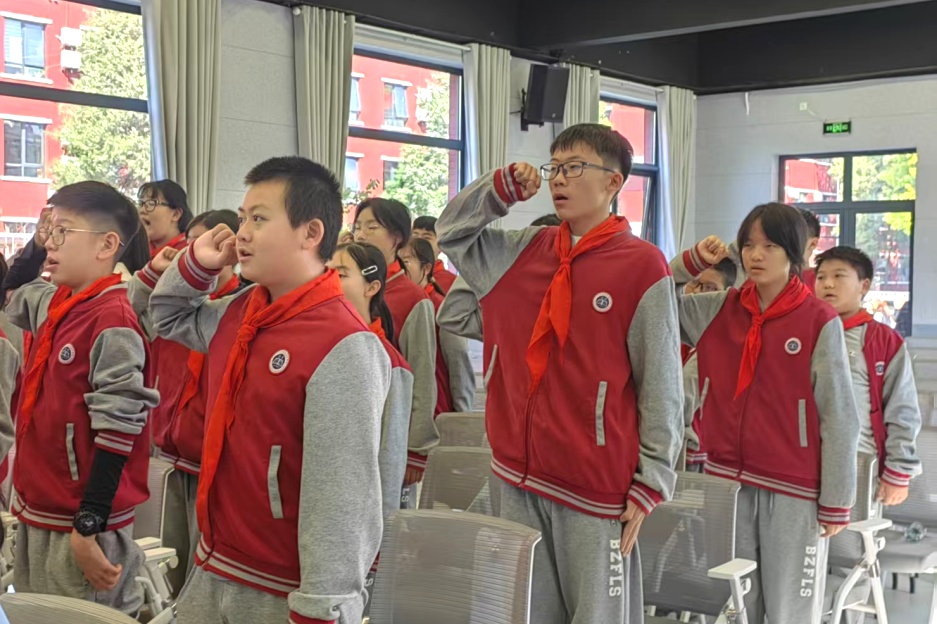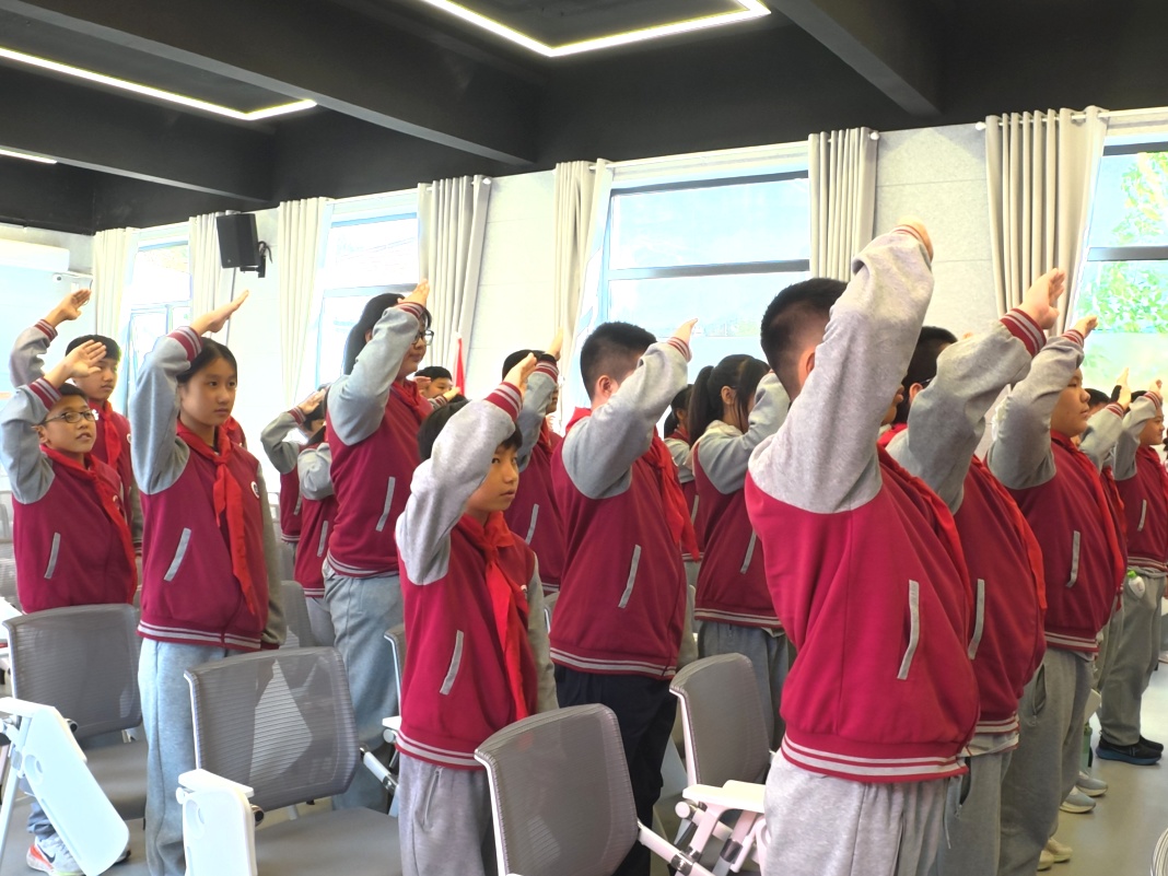 “我是中国少年先锋队队员,我在队旗下宣誓……”全体少先队员高举右拳,重温入队誓词,誓言铿锵,掷地有声。面对“准备着:为共产主义事业而奋斗!”的呼号,队员们以整齐而洪亮的“时刻准备着”作出回应,使命与担当在这一刻深深烙印于心。