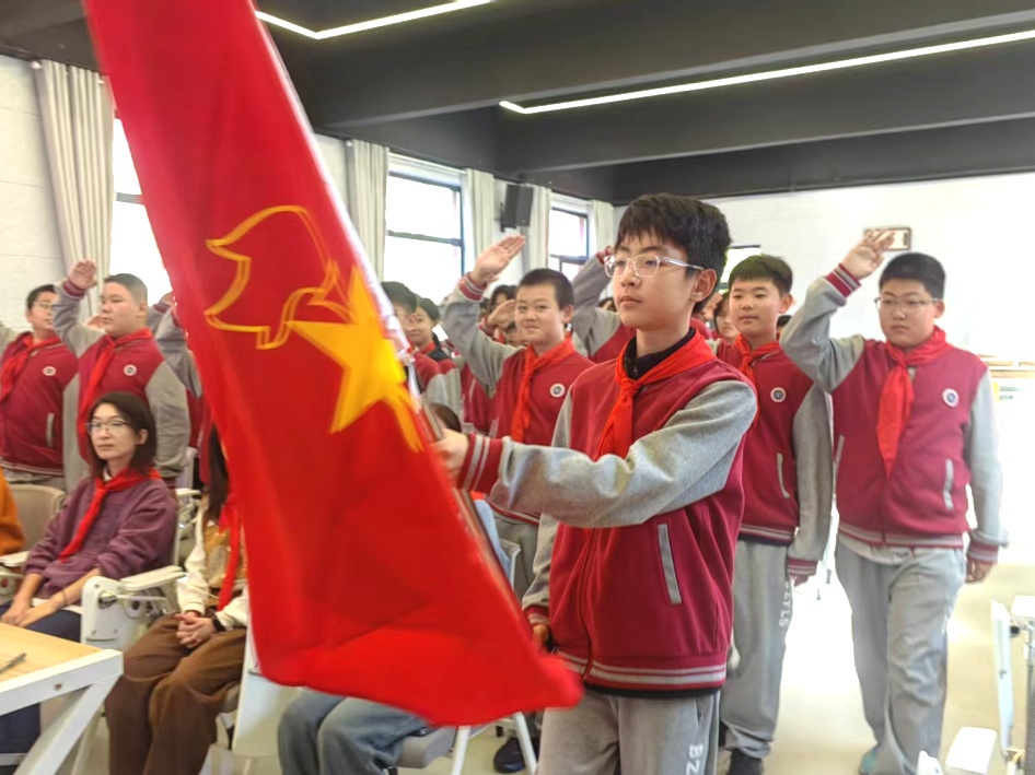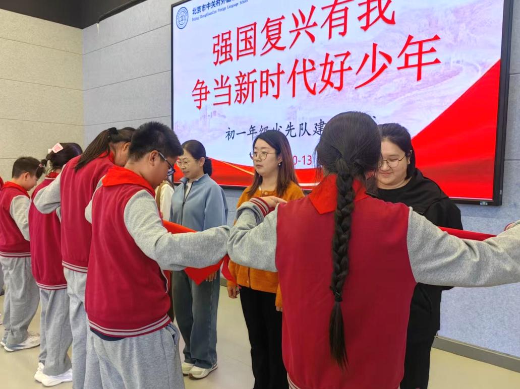 10月13日,在中国少年先锋队成立76周年之际,北京市中关村外国语学校初一年级隆重举行 “强国复兴有我,争当新时代好少年” 主题少先队建队仪式。整场活动庄严隆重,不仅标志着初中少先队组织建设开启新篇,更将红色基因根植于心,激励全体队员朝着强国复兴的宏伟目标奋勇前进。