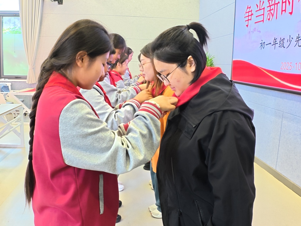 仪式伊始,少先队员代表手捧鲜艳的红领巾,步履庄重地走向老师,为他们悉心佩戴。这一抹红色的纽带,不仅传递着队员们对师长的崇高敬意,更象征着红色基因的传承与责任使命的担当。