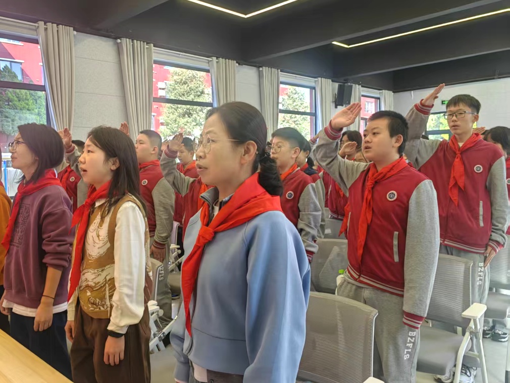 中队辅导员代表梁婷老师向全体队员提出三点期望:一要将“小我”融入“大我”,树立远大志向;二要将少先队的优良传统转化为创新实践,在各类活动中敢想敢为;三要将“时刻准备着”的誓言落实于日常,从点滴做起,不负时代重托。