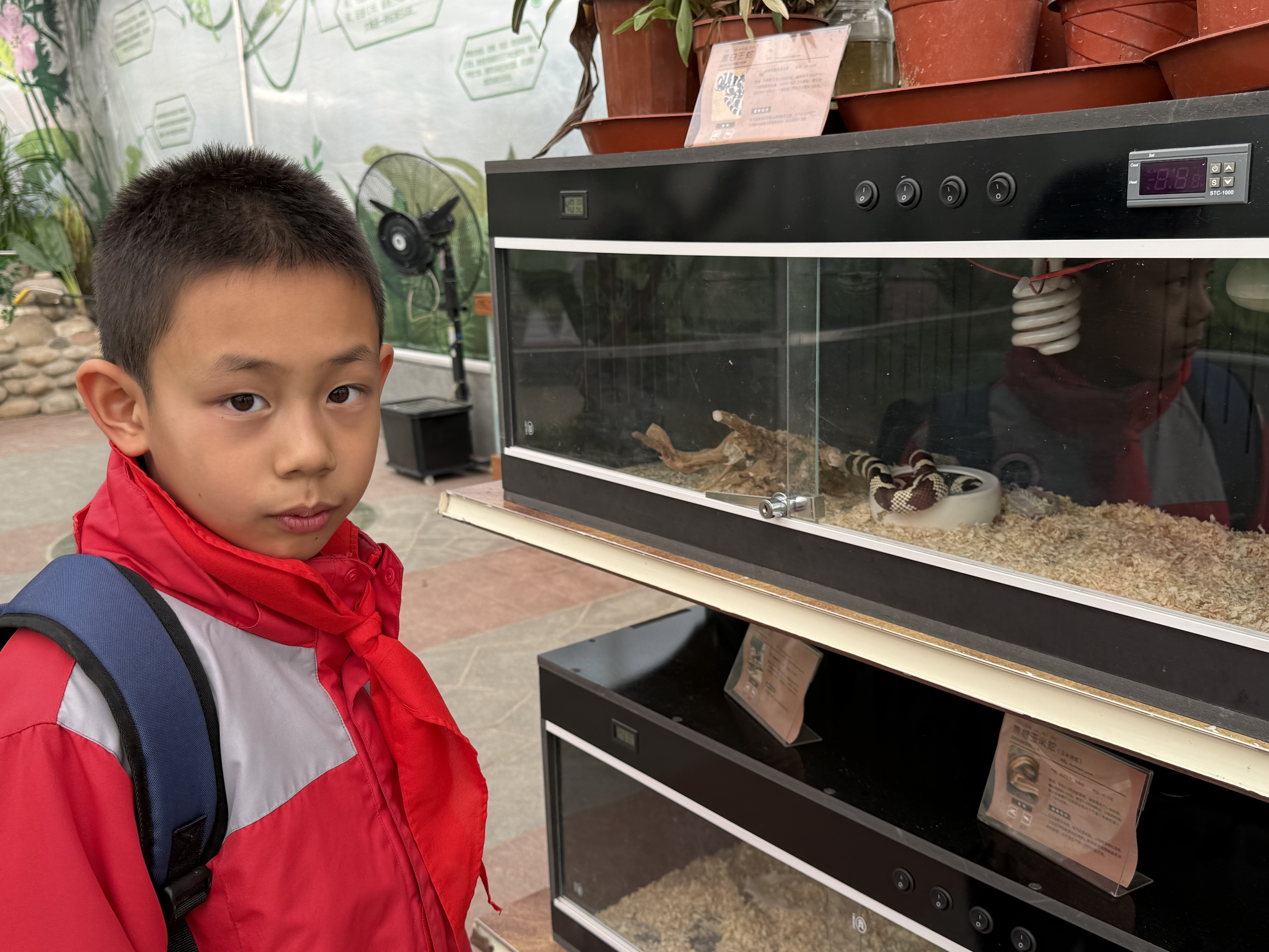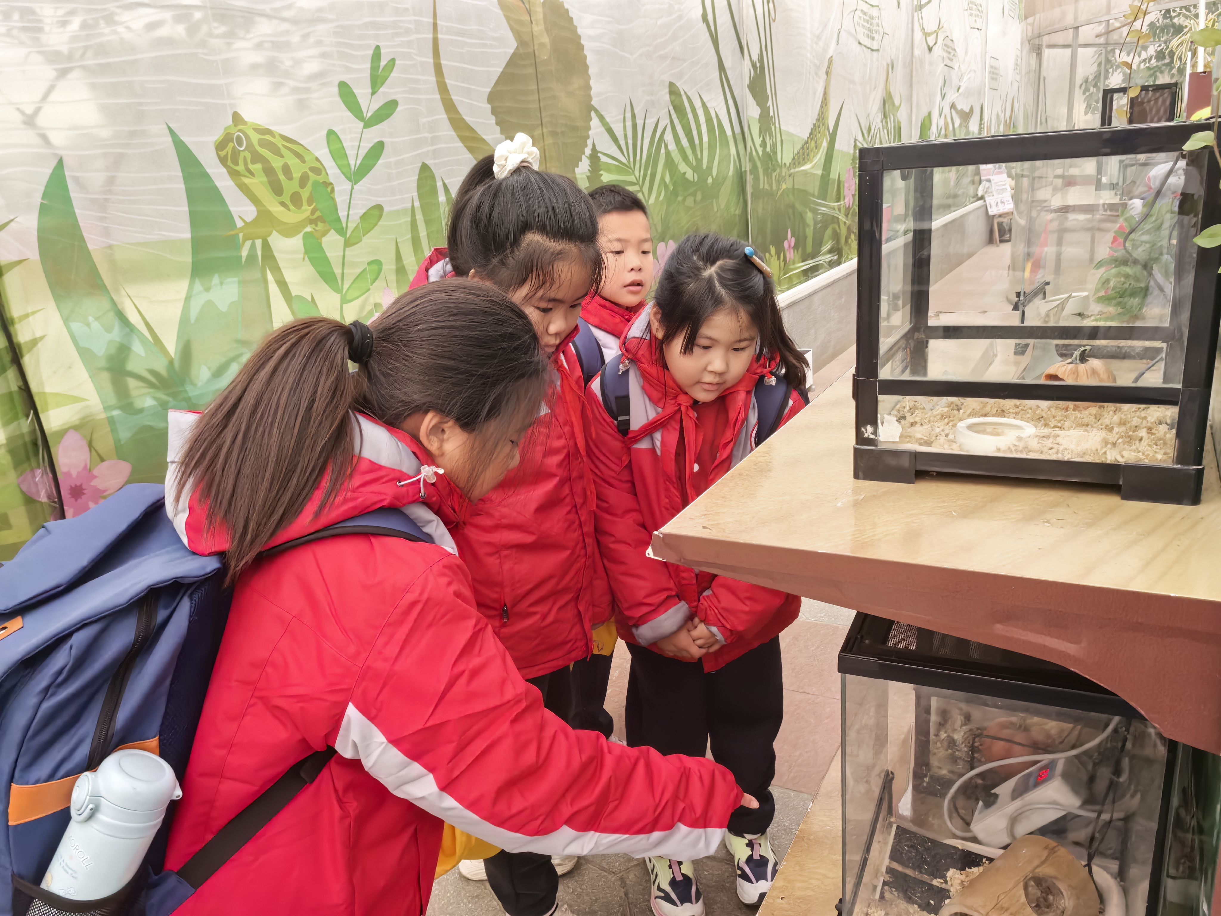 爬行部落里,学生们第一次近距离观察蜥蜴的鳞片与龟的步态,书本中“冷血动物”的概念顿时变得真实而鲜活。