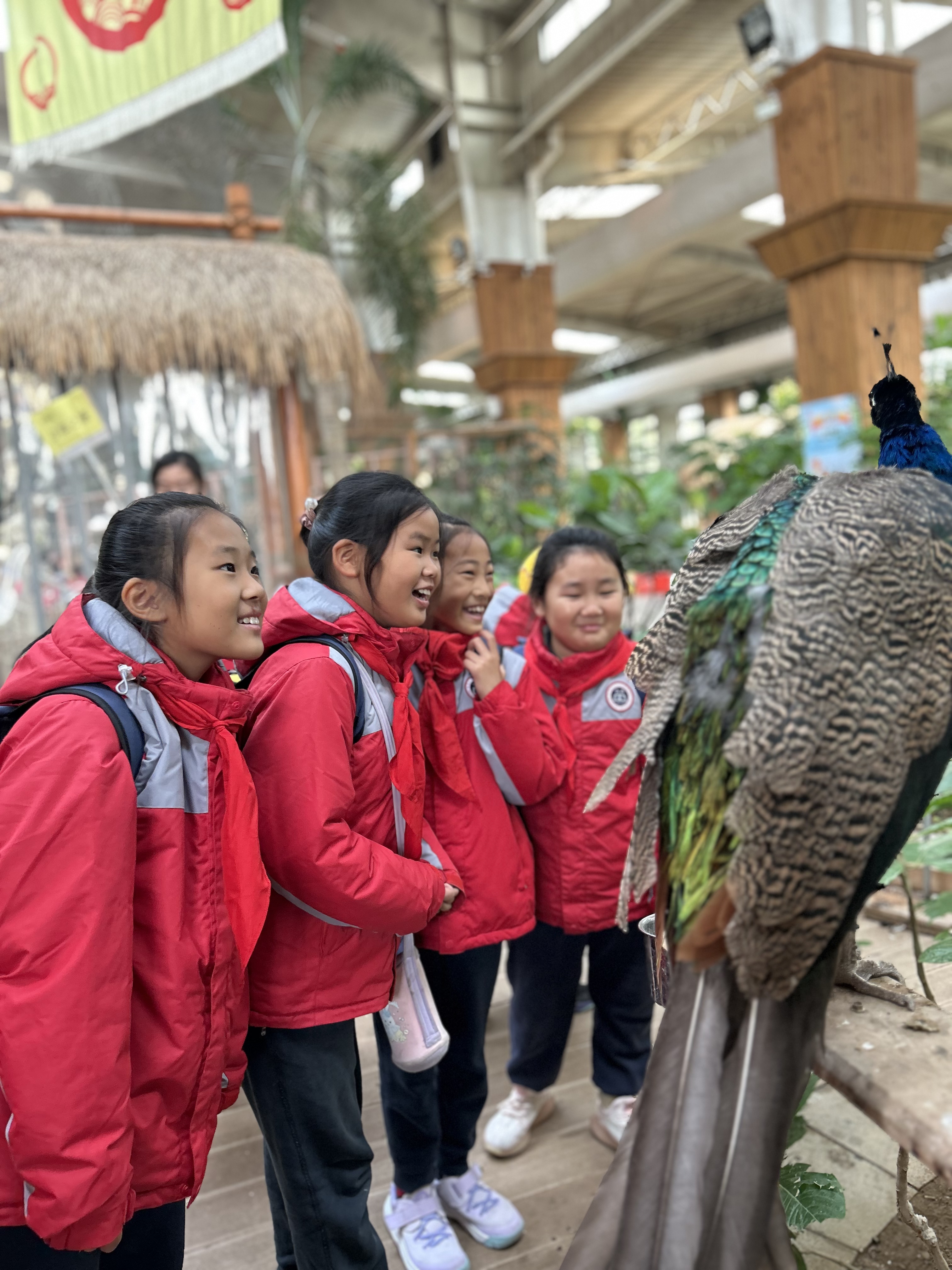 而在鹦鹉园,聪慧的鸟儿引来阵阵欢笑与掌声,学生与动物的互动在此刻温暖而生动。