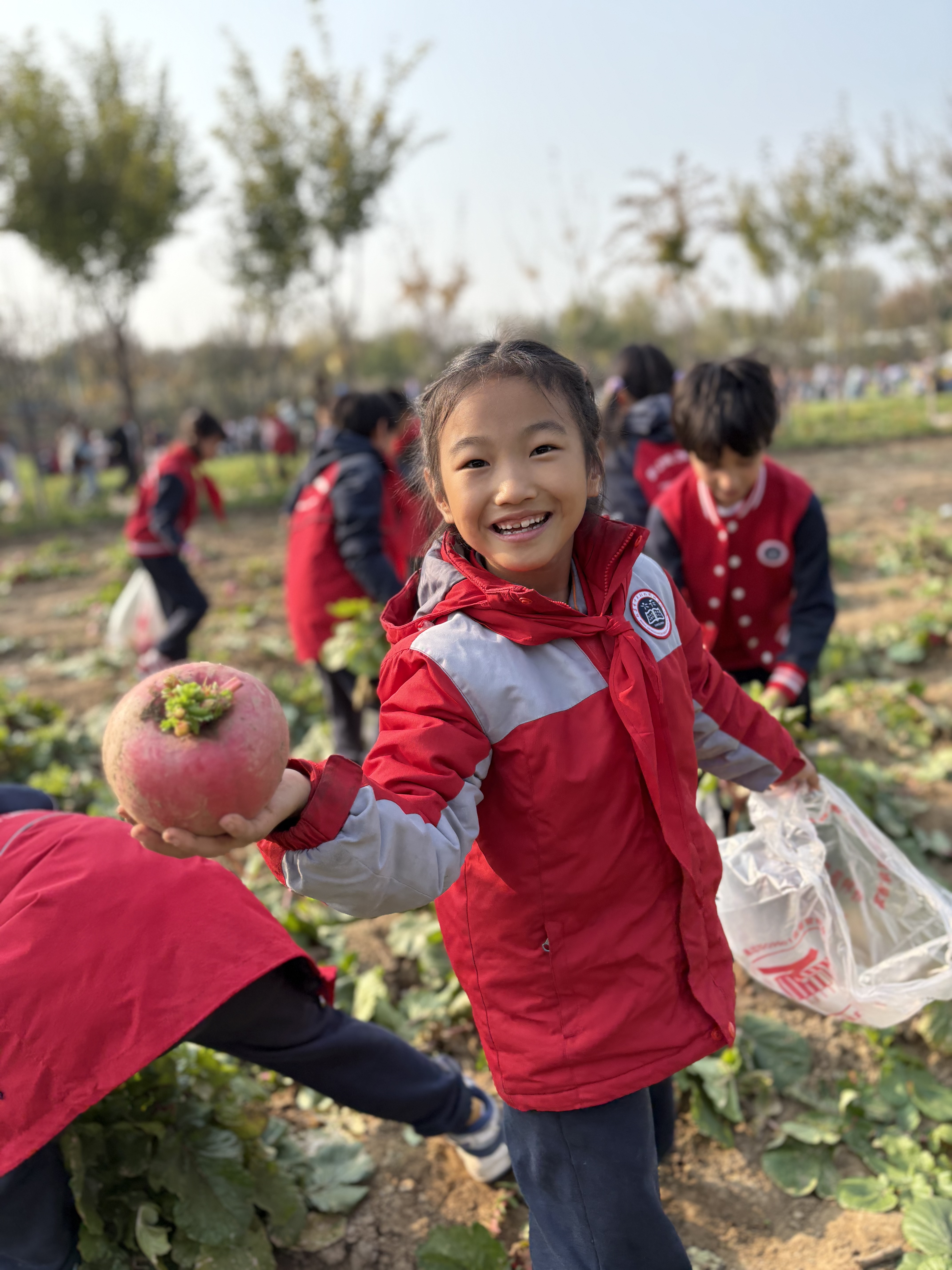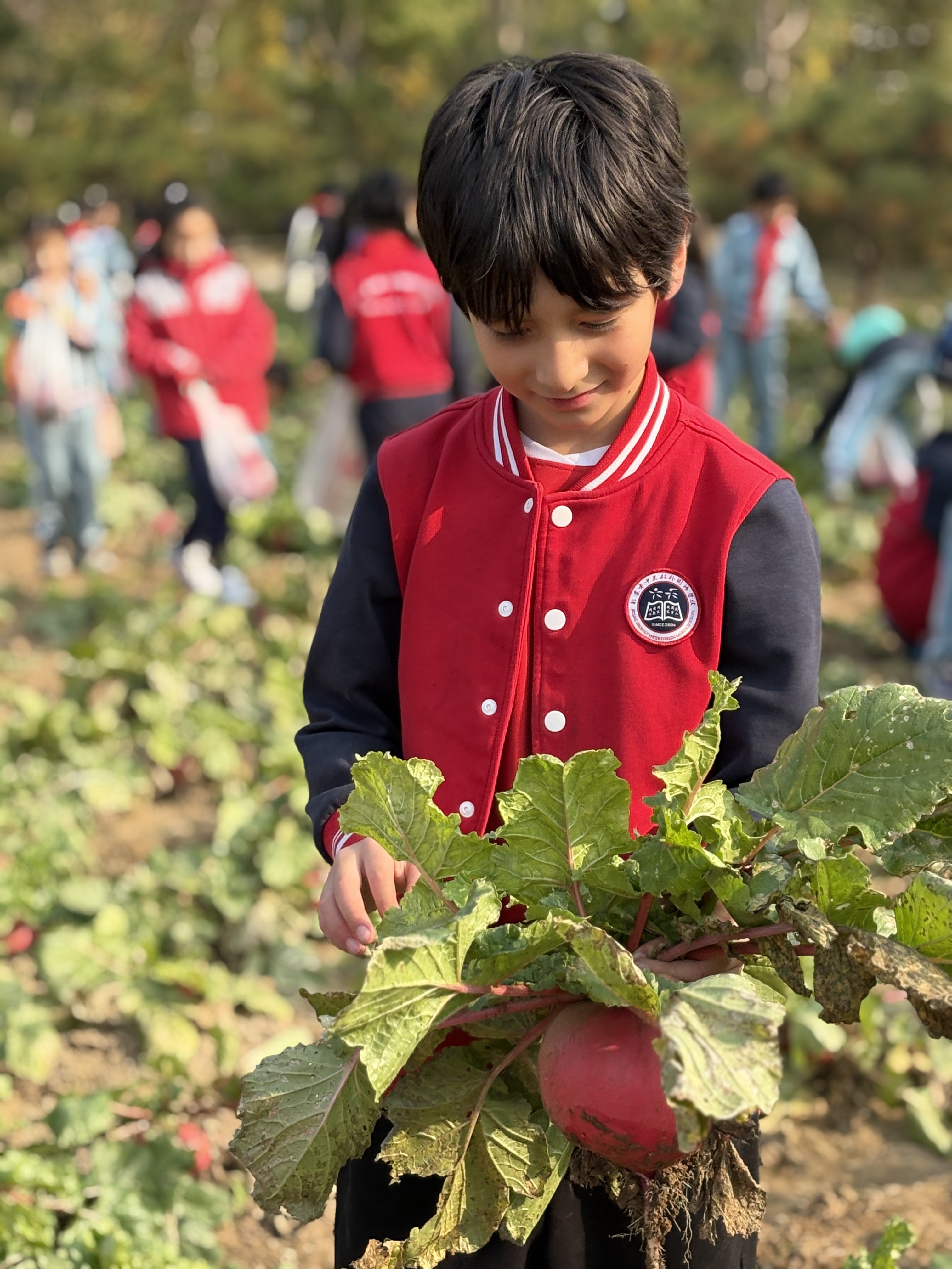 最后一站户外农耕区,将学习引向土地。同学们亲手拔萝卜,脸上映着满足的笑容。泥土沾手,却更真切地体会到“粒粒皆辛苦”的含义,同时也收获了劳动赋予的踏实与喜悦。