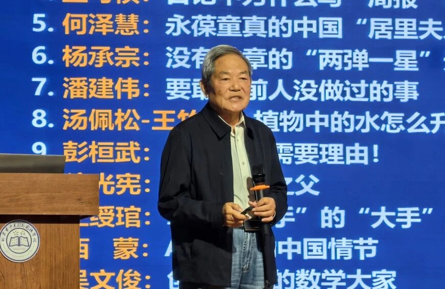 10月30日下午,国际欧亚科学院院士、中国科技大学原党委书记郭传杰先生走进北京市中关村外国语学校,带来题为《科学大家:为人治学的故事与精神——我的亲历、亲见与亲闻》的专题讲座,他以亲历者的视角,将鲜活的故事娓娓道来,深刻诠释“科学精神”和“家国情怀”,为学生们带来一场思想的洗礼。