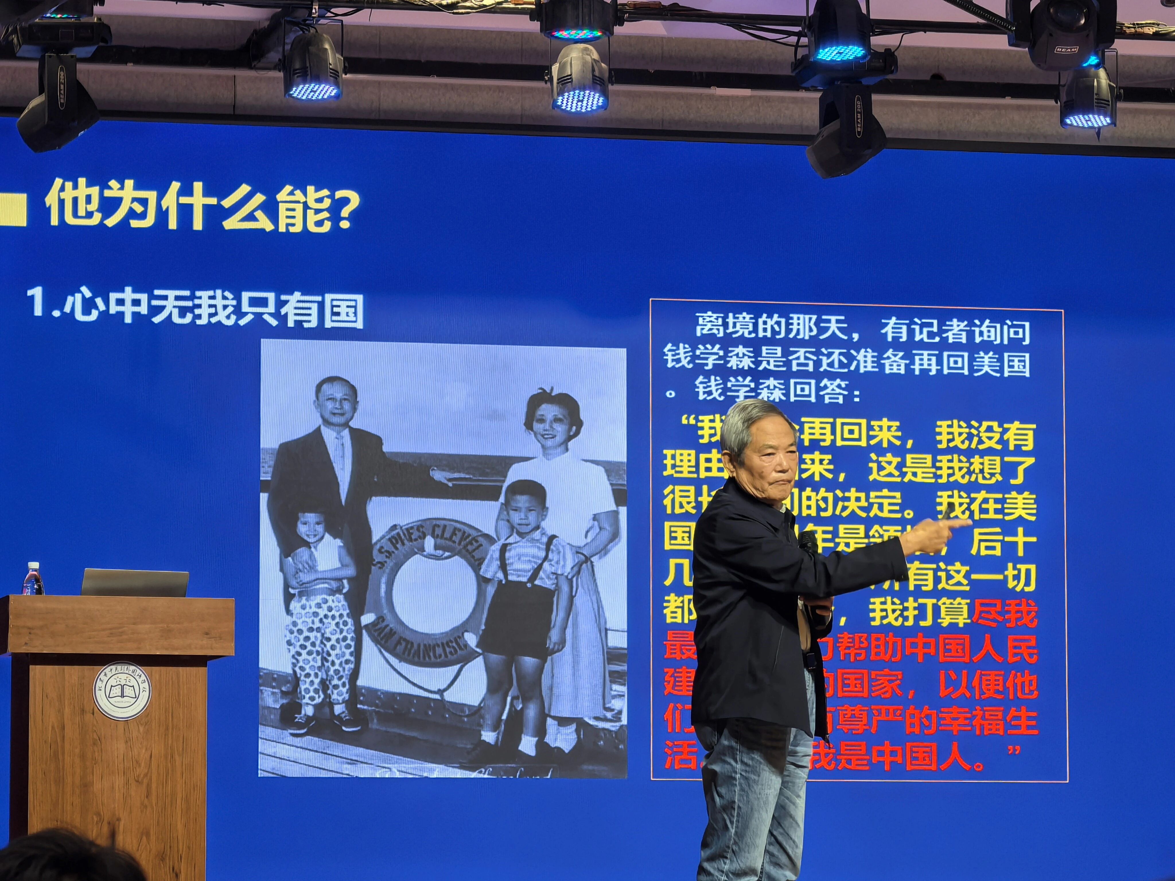 在多年的科研与教育管理生涯中,郭传杰院士亲身接触、观察并聆听许多科学大家的言行。本次讲座中,他围绕钱学森、竺可桢、杨承宗、周光召四位科学家的真实故事,为同学们呈现了一幅科学精神与家国情怀交融的生动图景,四位科学家以不同方式诠释了何为科学家精神。