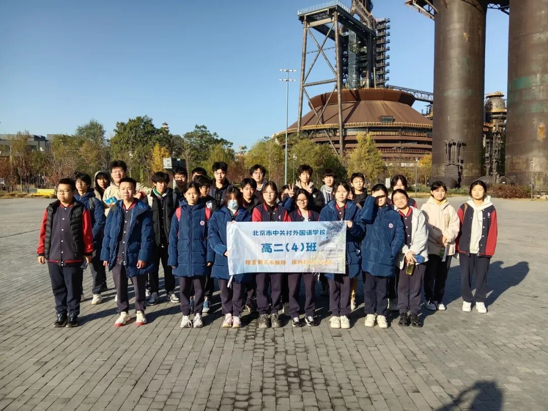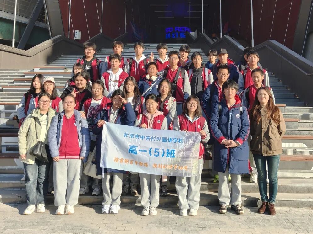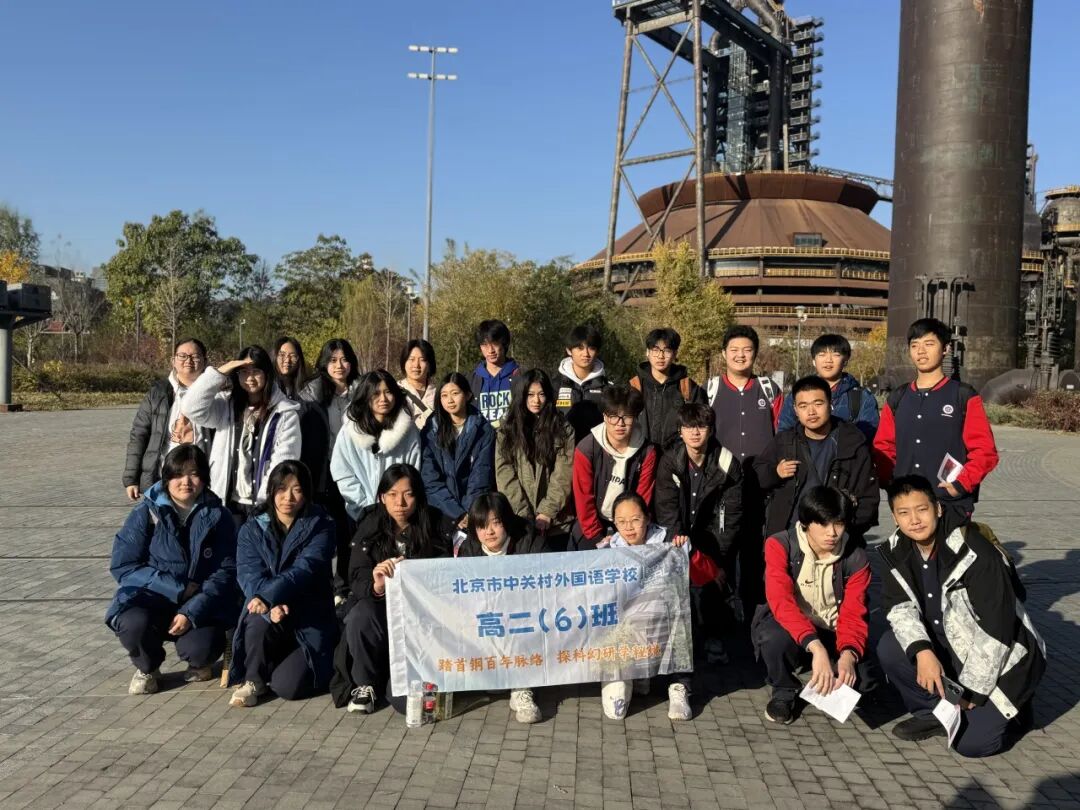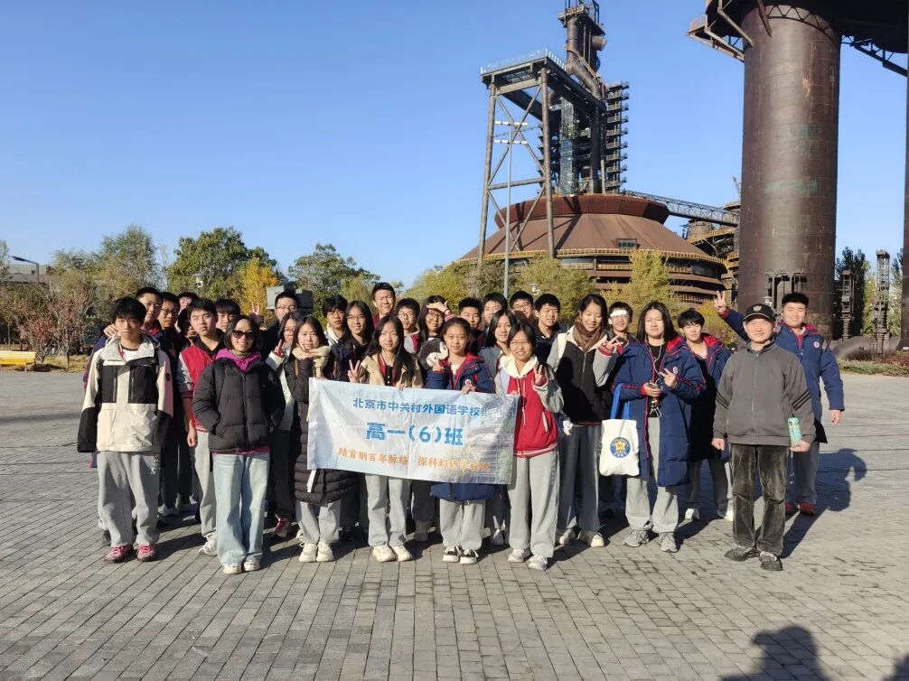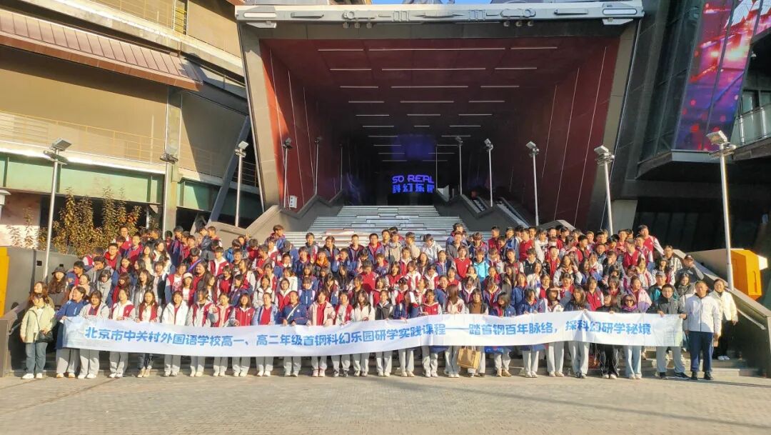 熹微晨光中,朝阳点染天际,北京市中关村外国语学校高中部的学生们迎着晨风,正式开启以“踏首钢百年脉络,探科幻研学秘境”为主题的一日研学征程。本次活动以工业遗产与科技融合为主线,通过实地探访、沉浸体验与课题探究相结合的方式,引导学生在行走中学习,在体验中成长,感受百年首钢从“钢铁巨人”向“科幻地标”的华丽蜕变。