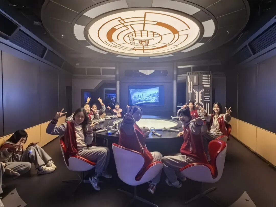 在乐园中,同学们分组体验了“钢血洪流”、“限星迷航”、“深空密令”、“奇境穿梭”等一系列科幻主题项目。通过360度翻转与全景模拟系统,同学们亲身感受了航天科技的精密设计与仿真系统的高效运行。这些沉浸式体验不仅带来视觉与感官的双重震撼,更让同学们在互动娱乐中,直观理解了人工智能、人机交互等前沿技术的应用原理,进一步激发了对科技奥秘的探索热情。