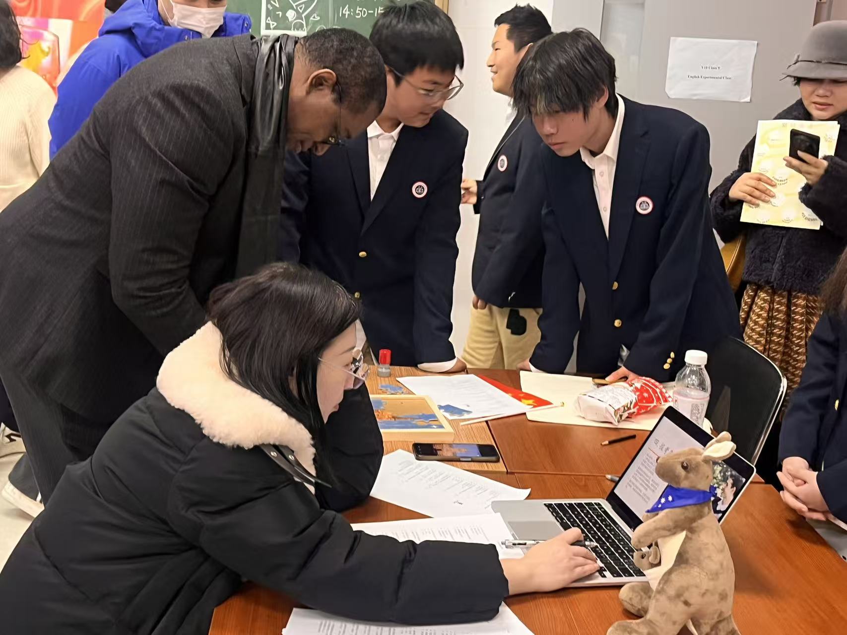 以“阳光昆州”迎宾,袋鼠立牌亲切可爱,留言板上满是亲子寄语。简约布展传递真诚交流,家长感受到了学生对文化沟通本质的理解。