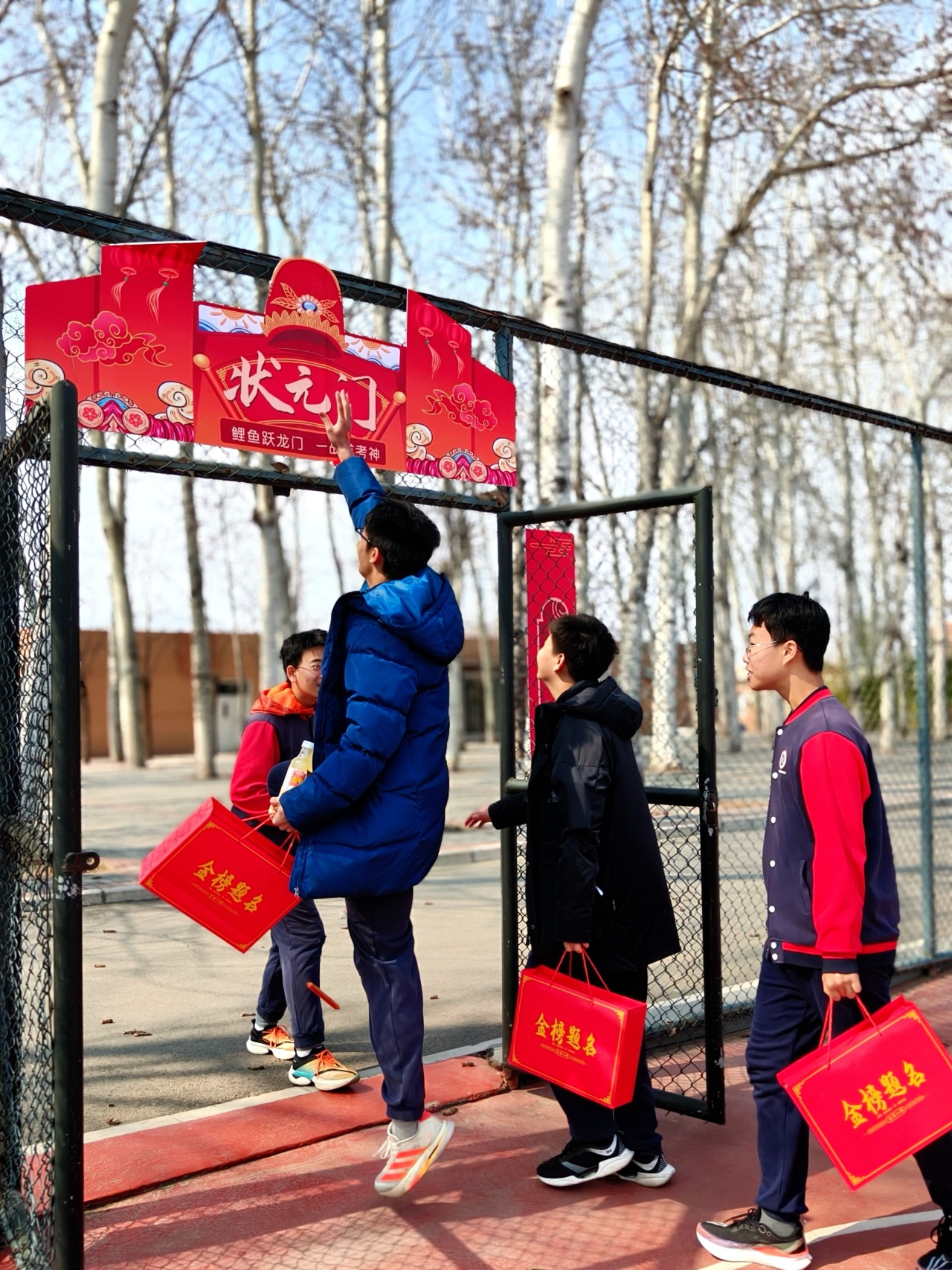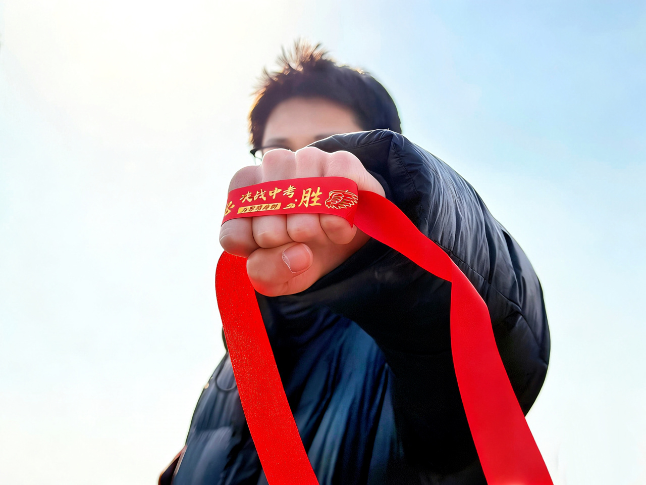 午间的操场,早已被热血点燃。“中考倒计时 100 天” 的立牌在阳光下格外醒目。老师们亲手为每位学生系上红绳,红丝绕腕藏着“金榜题名、步步登高”的美好祝愿,学生们笑容灿烂,迈步跨过红色拱门,开启百日冲刺的崭新征程。