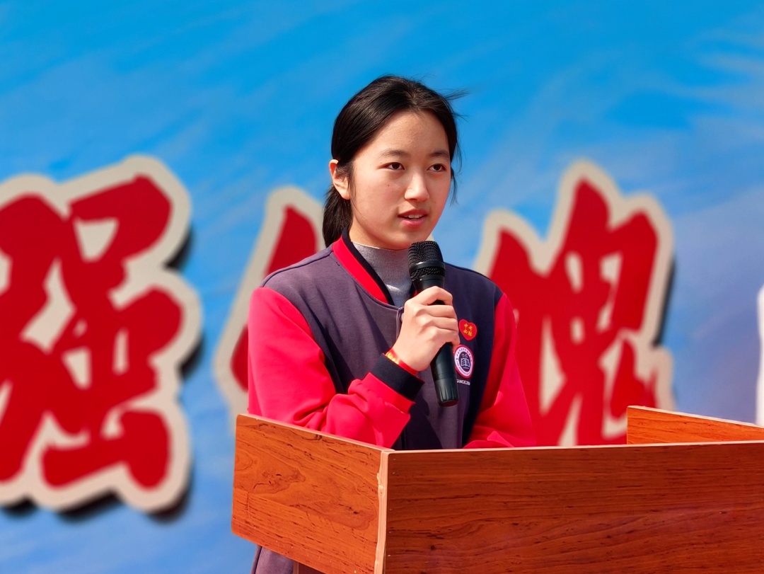 学生代表刘涵月道出少年昂扬,以百日为誓,愿以拼搏赴韶华。
