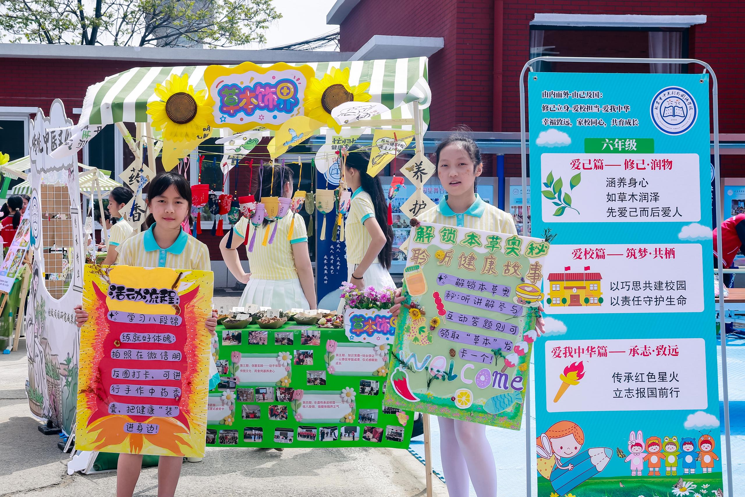 年级项目式学习成果集市热闹非凡:生肖民俗、传统节日、二十四节气、丝路文明、民族风情娓娓道来,还有中医药文化浸润身心,各种主题呈现立足爱己修身、爱校践行、爱国致远的成长内涵。孩子们化身小小研究员,自信讲解探究过程,家长认真倾听、积极互动,成为提问者,更是孩子们学习成果的“粉丝”,家校温情在交流中自然流淌。