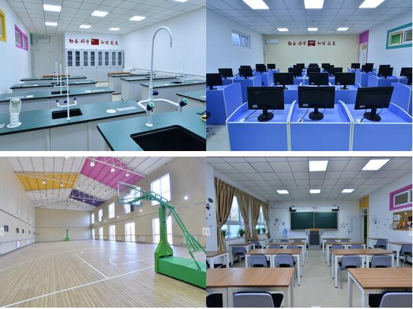 学校拥有现代化教学设备,各学科实验室、形体房、琴房、多媒体教室、图书馆、大礼堂、多功能厅、室内体育馆、全塑胶操场(足球场)一应俱全,让学生享受到高品质的教学环境。